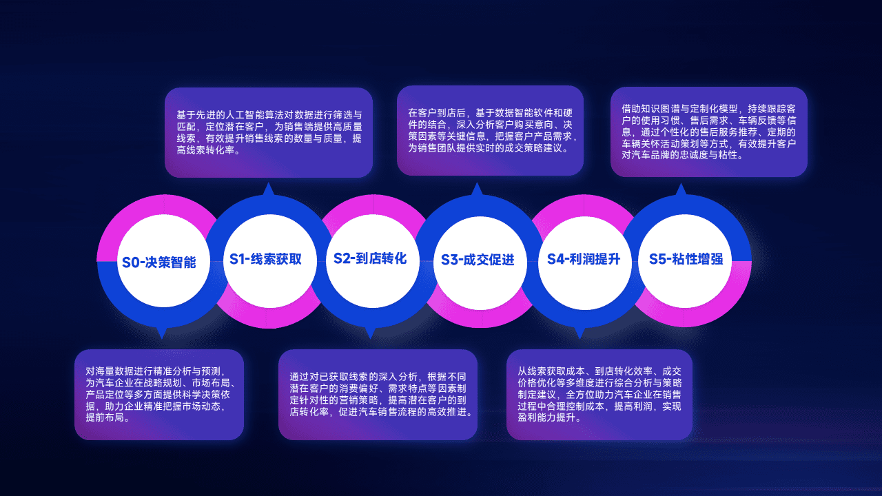 通过拓宽潜在客户来源、、优化线索分配并提高到店转化率,,,,以增强销售效率。。。。同时,,,利用线索数据不断优化分析模型,,,,有效提升转化率,,,扩大营销影响力。。。